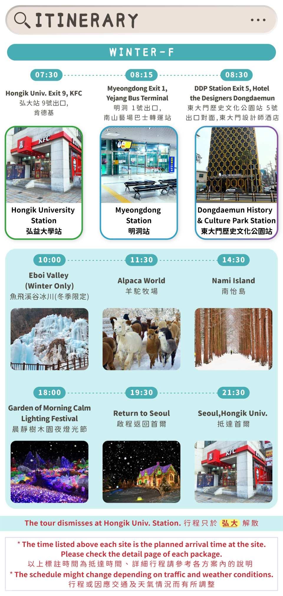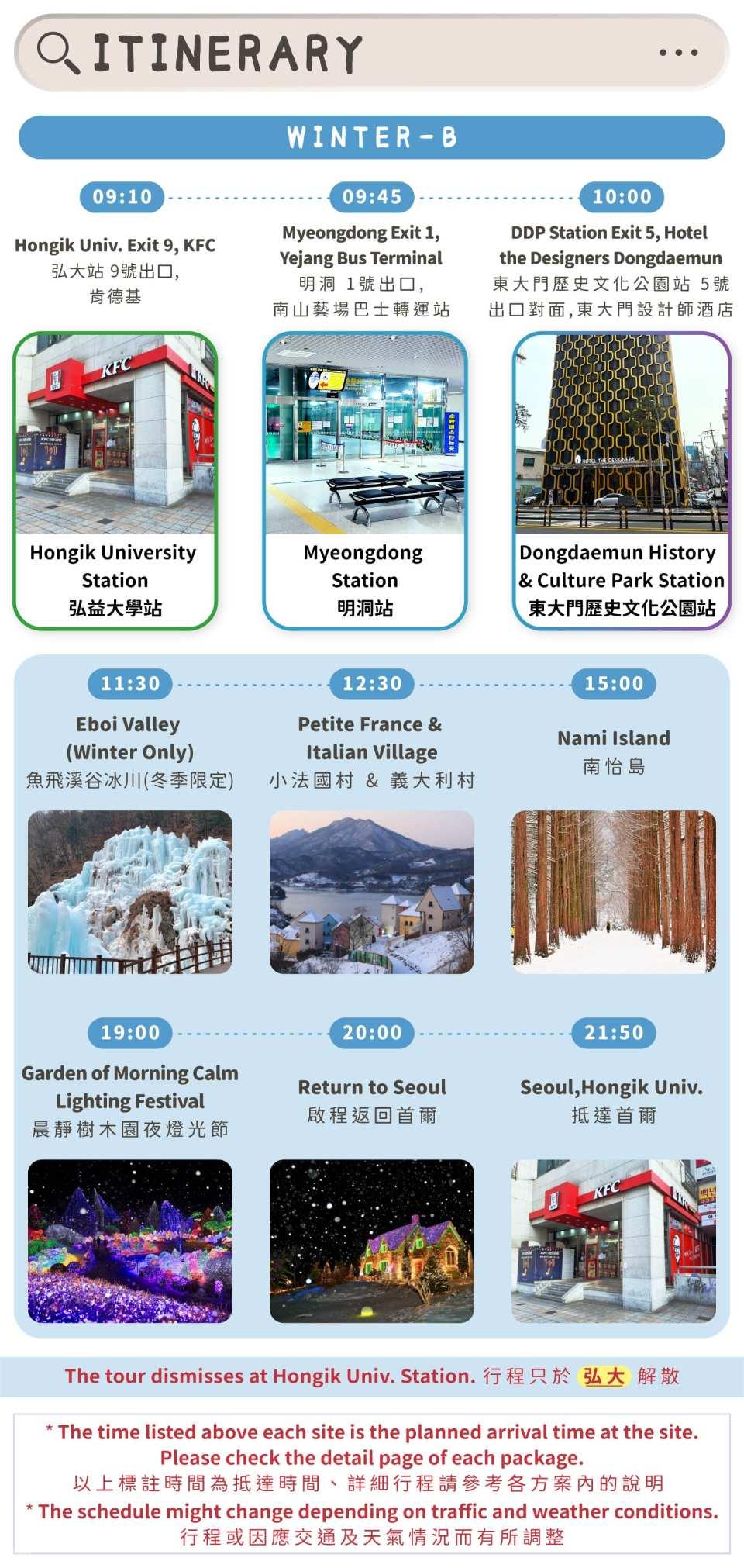 - 冬季限定 B | 魚飛溪谷冰川 X 南怡島 X 晨靜樹木園夜燈光節 X 小法國村+義大利村一日遊