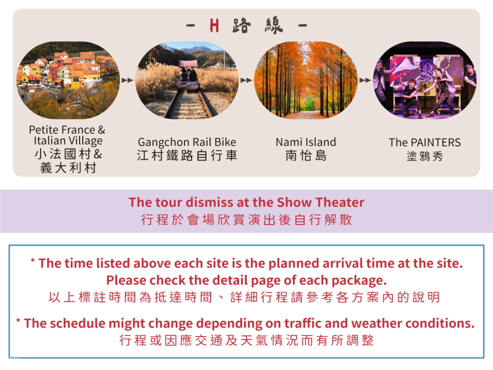 方案H) 塗鴉秀、南怡島、小法國村 & 小義大利村、加平鐵路自行車