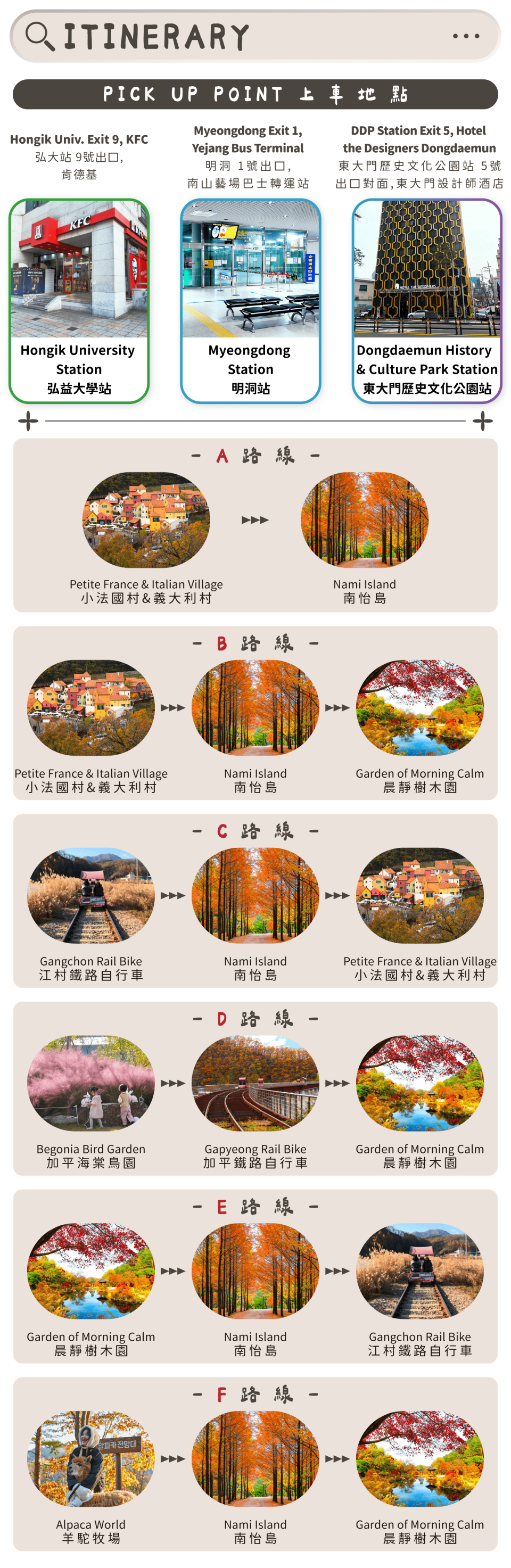 方案B) 南怡島、小法國村 & 小義大利村、晨靜樹木園