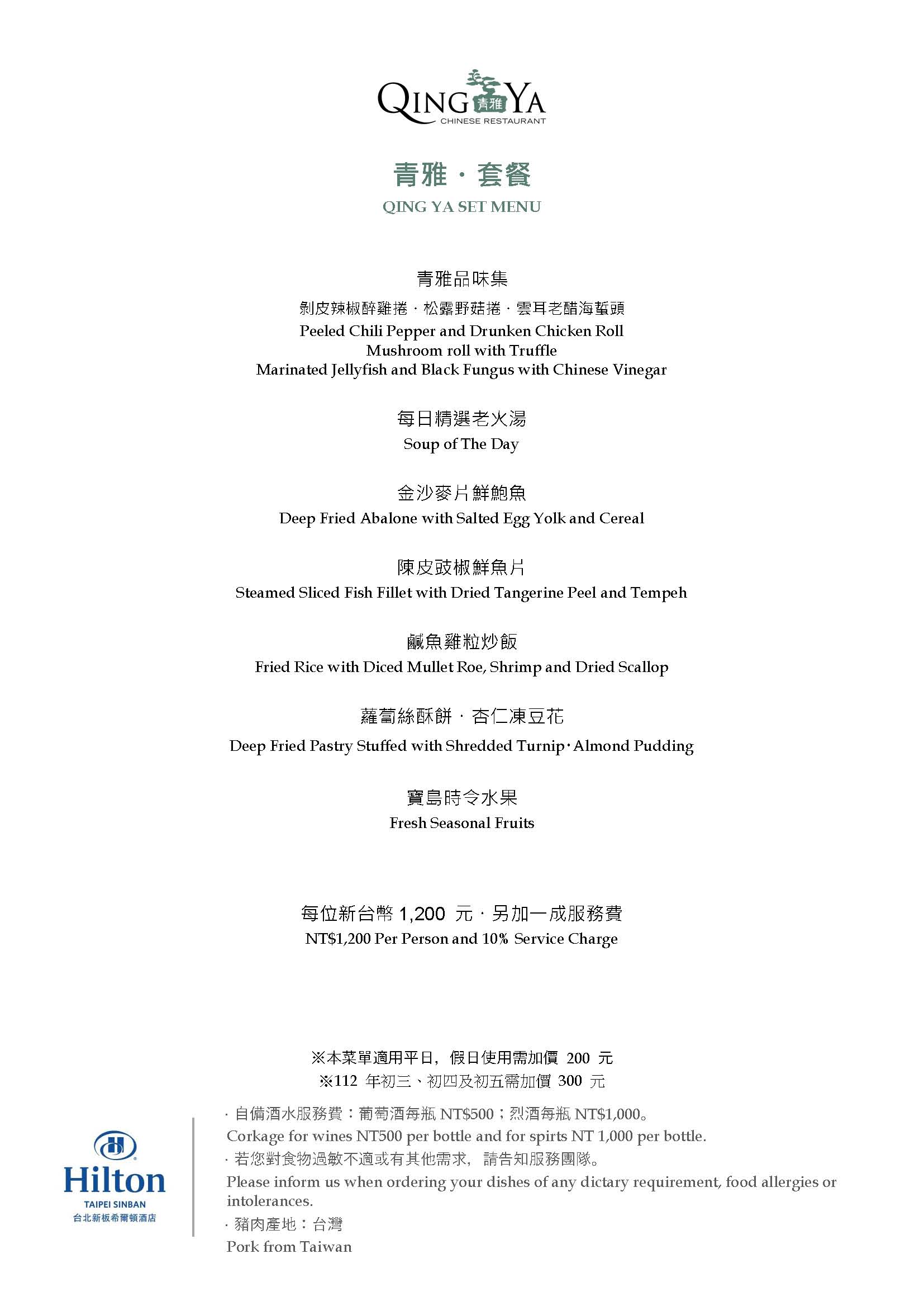 ※中餐廳 - 青雅 QING YA | 訂位專線︰(02)2958-3000