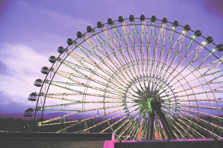 隨著摩天輪的高度漸升,開展至眼前的是與白晝截然不同的景緻