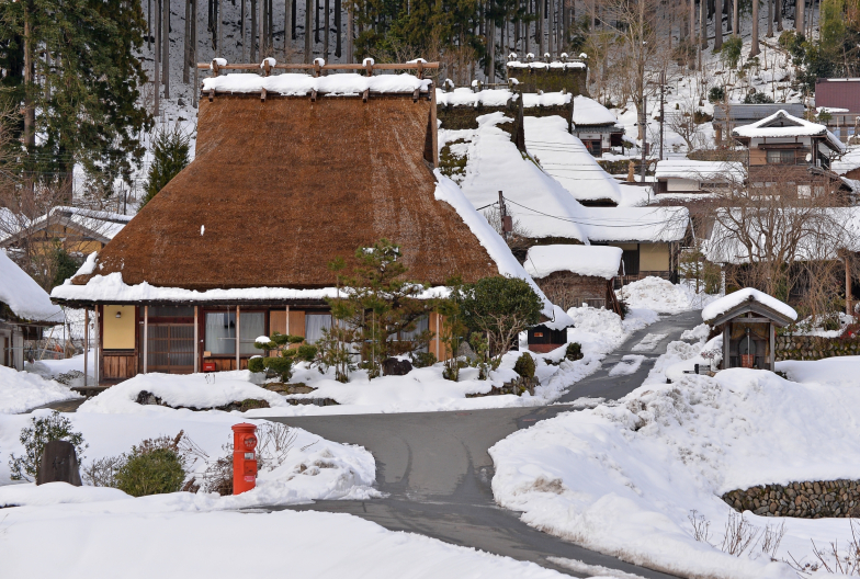這個小鎮擁有許多保存完好的「茅葺(かやぶき)」民居,尤其是「北」集落,維護著歷史悠久的建築風貌。