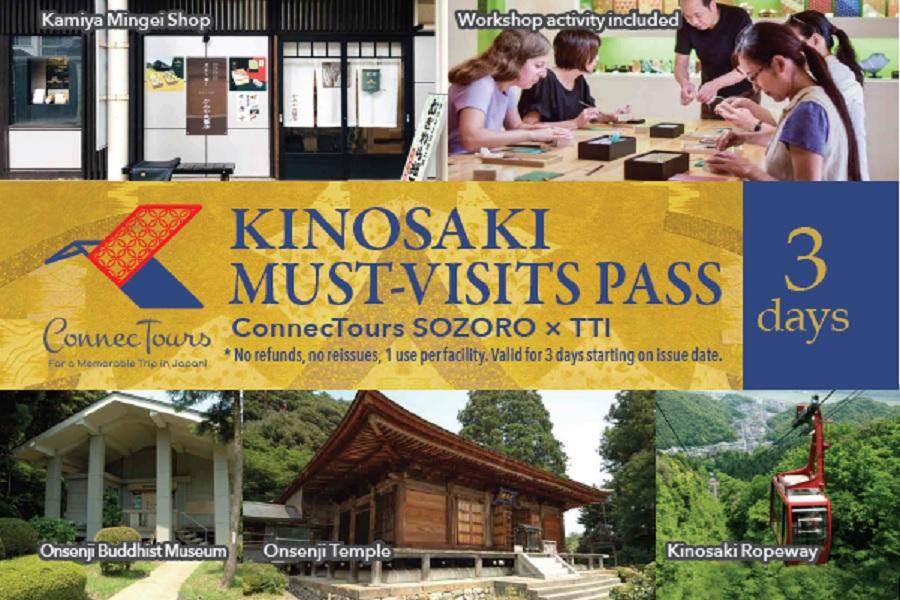 「KINOSAKI MUST-VISITS PASS城崎溫泉3日通票」為可以參觀體驗城崎溫泉街主要觀光景點的優惠票券。