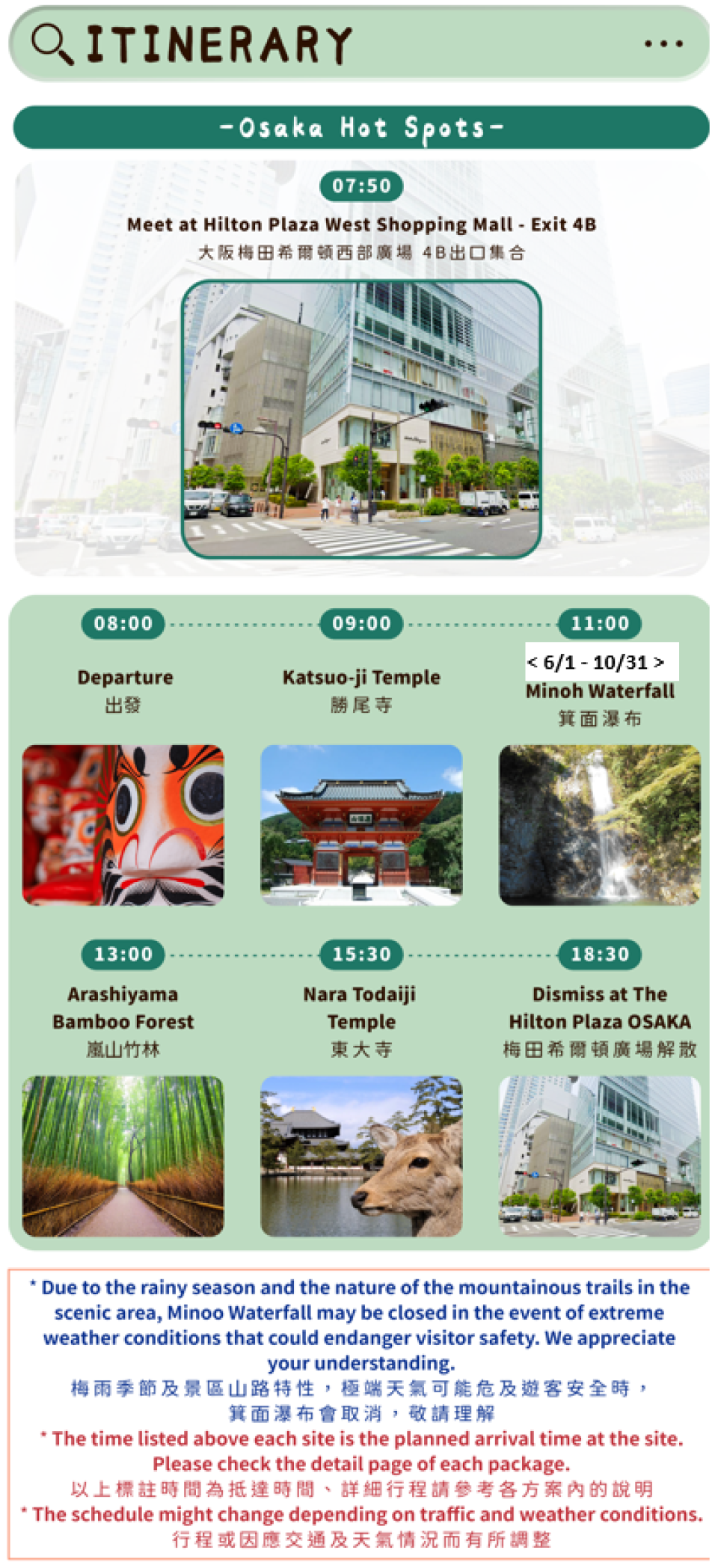 集合地點:大阪梅田希爾頓西部廣場 4B出口