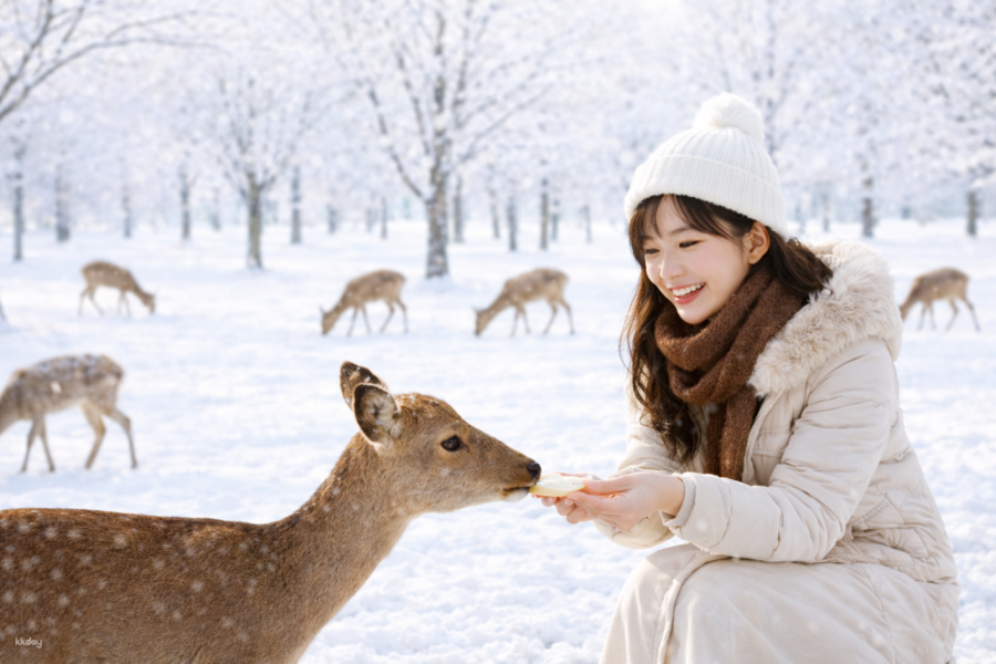在這裡,可以盡情與可愛的奈良鹿親密互動!奈良公園的一部分位於春日大社境內,這座神社建於西元768年,而奈良的鹿在過去1300年間一直受到保護,與人類和諧共存。由於奈良鹿是人類與野生動物共同生活的歷史象徵,它們被列為國家天然紀念物。可以嘗試給鹿吃它們最愛的鹿仙貝,體驗與這些溫順可愛的生靈互動的樂趣! 當然,和奈良鹿的合照也是旅途中最具代表性的回憶之一。此外,奈良還有東大寺大佛、春日大社、興福寺等著名景點,遊覽這些歷史遺跡也同樣樂趣無窮。