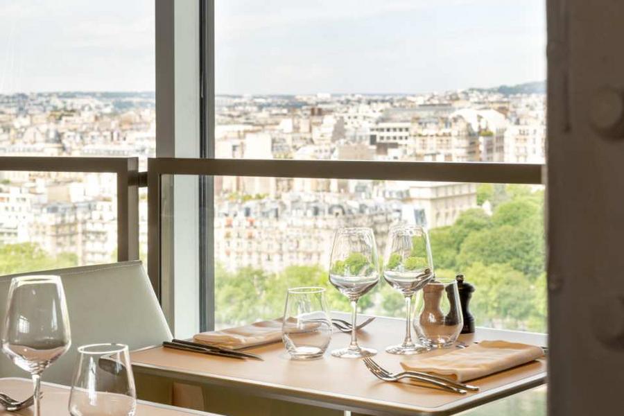 你可以在這自由選擇喜愛的菜色和座位區域。座位皆位於窗邊,可俯瞰巴黎美景、艾菲爾鐵塔,亦或是中央小酒館的景色。接下來請選擇您喜歡的菜色。菜單提供 2 道或 4 道菜的選擇,皆搭配飲品(如香檳、水或咖啡等),也可選擇不搭配飲料。