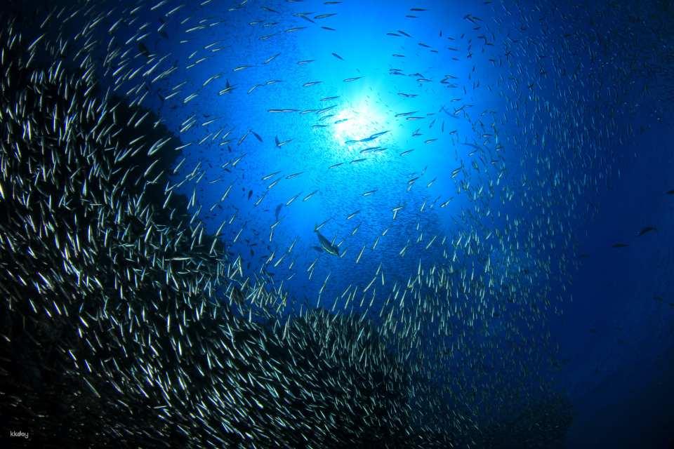 在巴斯卡多島(Pescador Island),您可以在壯觀的珊瑚礁間浮潛。前往 帕格納薩瑪海灘(Panagsama Beach),您將有機會邂逅海龜。體驗沙丁魚風暴,與一大群魚一起游泳。欣賞這些微小閃亮的生物完美和諧地游泳的奇觀。
