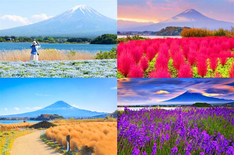 - 13:30河口湖大石公園,四季美景不停歇(約30分鐘)花期參考:薰衣草6-7月,海棠花、大波斯菊7-9月,10月有地膚