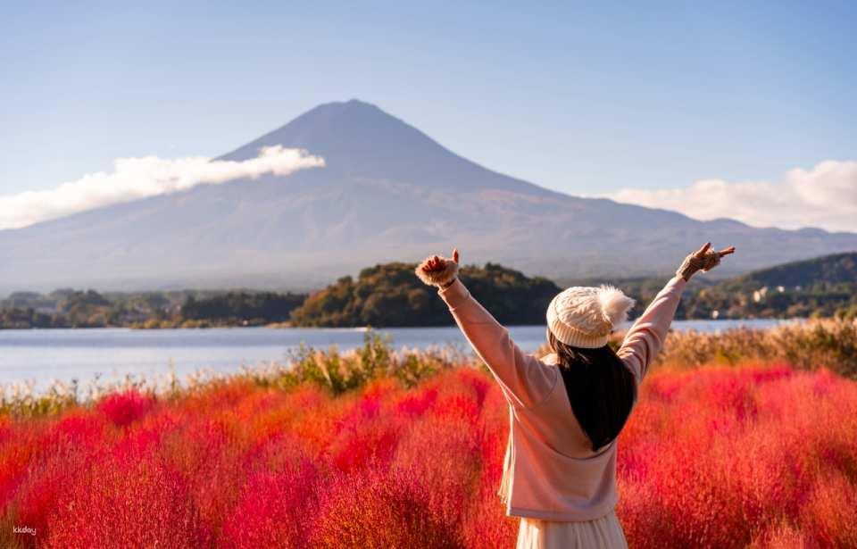 您可以自由漫步在河口湖湖畔,可在此盡情欣賞富士山風光。在此追加抹茶體驗,和當地的老師體驗製作抹茶,喝上一杯,體驗真正的日本文化。抹茶體驗完後,建議大家走出抹茶店,來到河口湖邊拍照打卡絕美富士山。