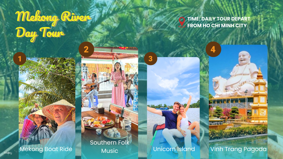 美湫市(My Tho) 和 檳椥市(Ben Tre)等待著你去探索!通過這趟旅程,體驗湄公河三角洲的美麗,帶你深入當地的文化和大自然之中。