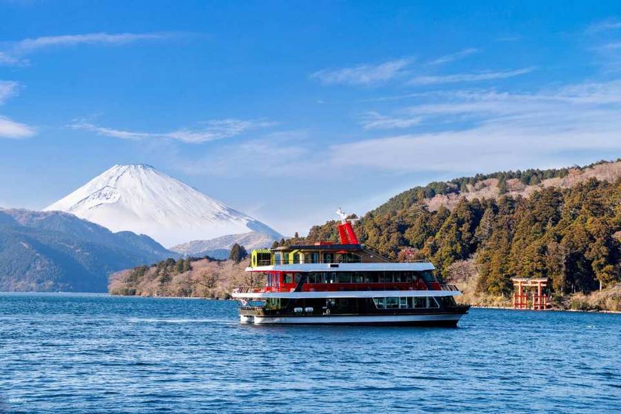 箱根海賊船航行於蘆之湖上,以華麗歐風造型聞名,是箱根代表性觀光體驗之一。乘船期間可欣賞湖光山色,天氣晴朗時還有機會遠眺富士山,深受旅客喜愛。