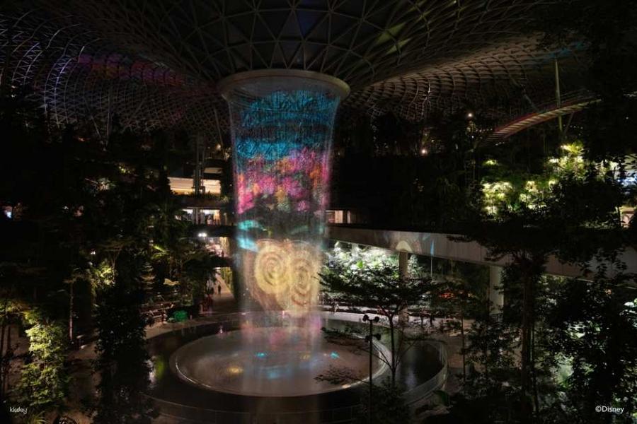 星耀樟宜機場以花園城市為設計靈感,擁有獨特的穹頂玻璃屋頂,打造絕佳的採光建築,其中最吸睛的造景—斜坡式設計植栽「森林谷Forest Valley」和世界最高室內瀑布「雨漩渦Rain Vortex」,夜晚時分還會上演聲光秀,打造出新加坡最令人驚豔的人間仙境。頂樓的星空花園更設有豐富趣味的設施和造景,讓你用不同的角度欣賞星耀樟宜之美。