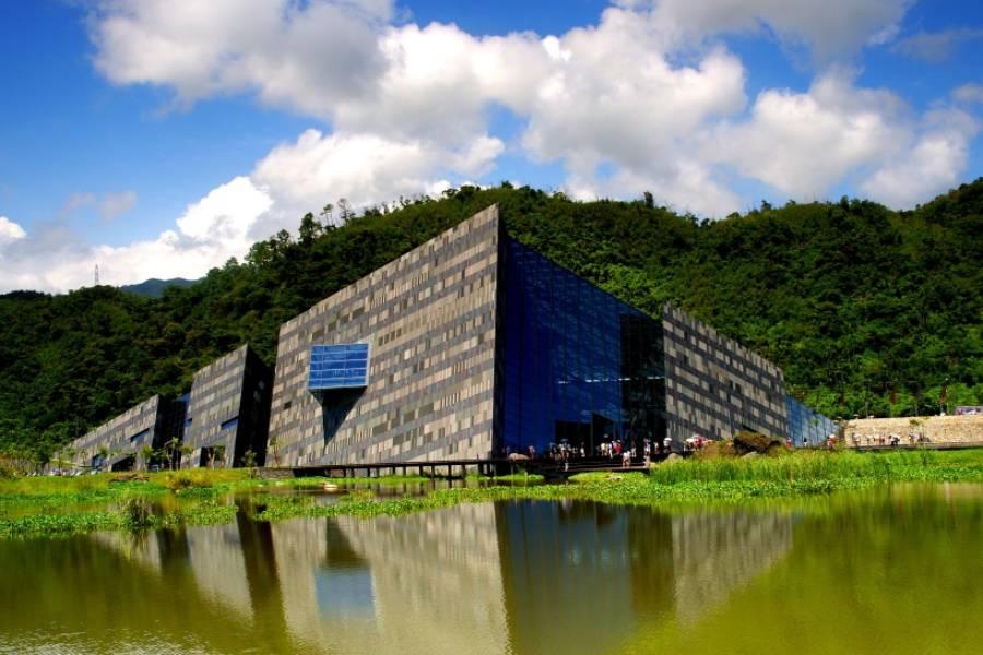 博物館的主體建築,最高頂點朝向東方的龜山島,沿著西南方逐漸下降而沒入地表,整座建物形成三角錐體。建築外牆面直接嵌入土中,模擬巨石挺立的意象,使建物與園區水域的烏石礁相呼應。蘭博建築體的外牆由韋瓦第的小提琴協奏曲─「四季」音符轉化而來,建築師依樂曲旋律將石材及鑄鋁板排列在外牆上,呈現蘭陽大地的農田景觀,彷若動態的音樂歌頌。