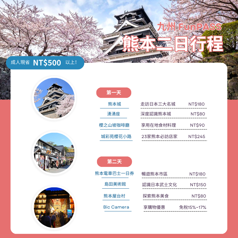● 可選項目及各式優惠持續擴充中,最新消息請見九州FunPASS官網或APP。