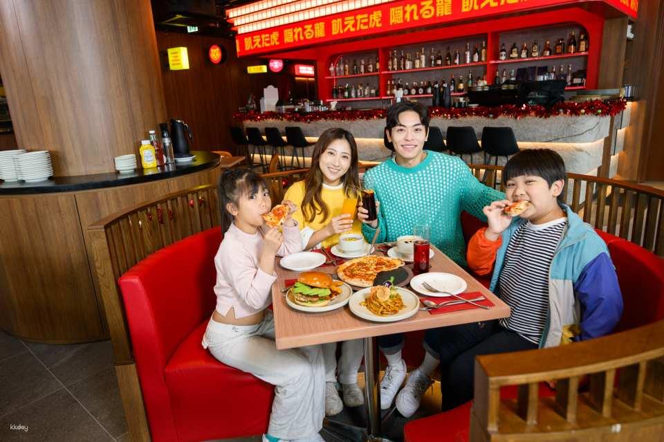 - “餓虎藏龍”餐廳 :白天為IP運動主題餓虎餐廳,提供親子及休閒用餐體驗;夜晚化身為 Hidden Dragon Bar,為看show後的觀眾提供一個時尚放鬆的社交場所,享受美酒與深夜小食。