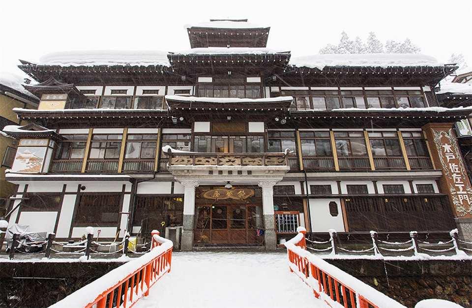 - 銀山溫泉地標 能登屋旅館 Notoya Ryokan,據說宮崎駿動畫《千與千尋》中的油屋場景靈感之一,就來自於能登屋旅館與銀山溫泉整體氛圍