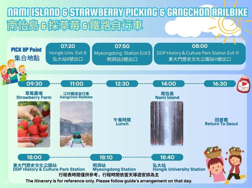 - 【方案I】南怡島 & 採草莓 & 鐵路自行車 一日遊