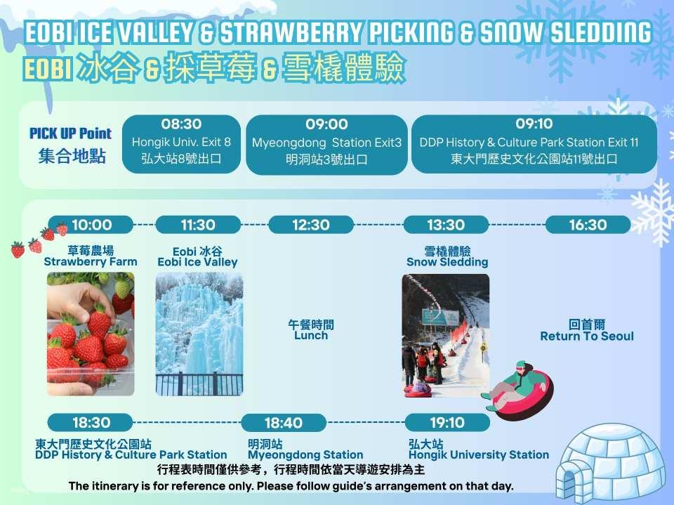 - 【方案B】Eobi 冰谷 & 雪橇體驗 & 採草莓一日遊