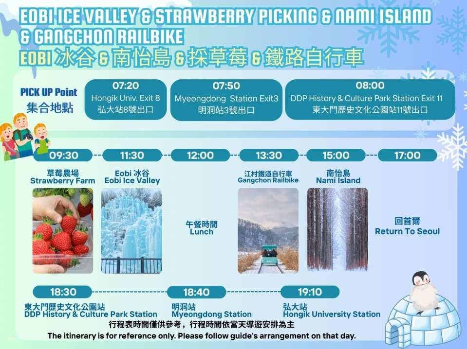 - 【方案E】Eobi 冰谷 & 南怡島 & 採草莓 & 鐵路自行車 一日遊