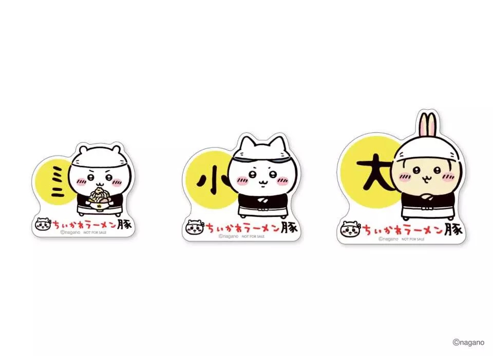 拉麵共有三種尺寸可供選擇:迷你碗(吉伊卡哇)、小碗(小八)、大碗(兔兔)。