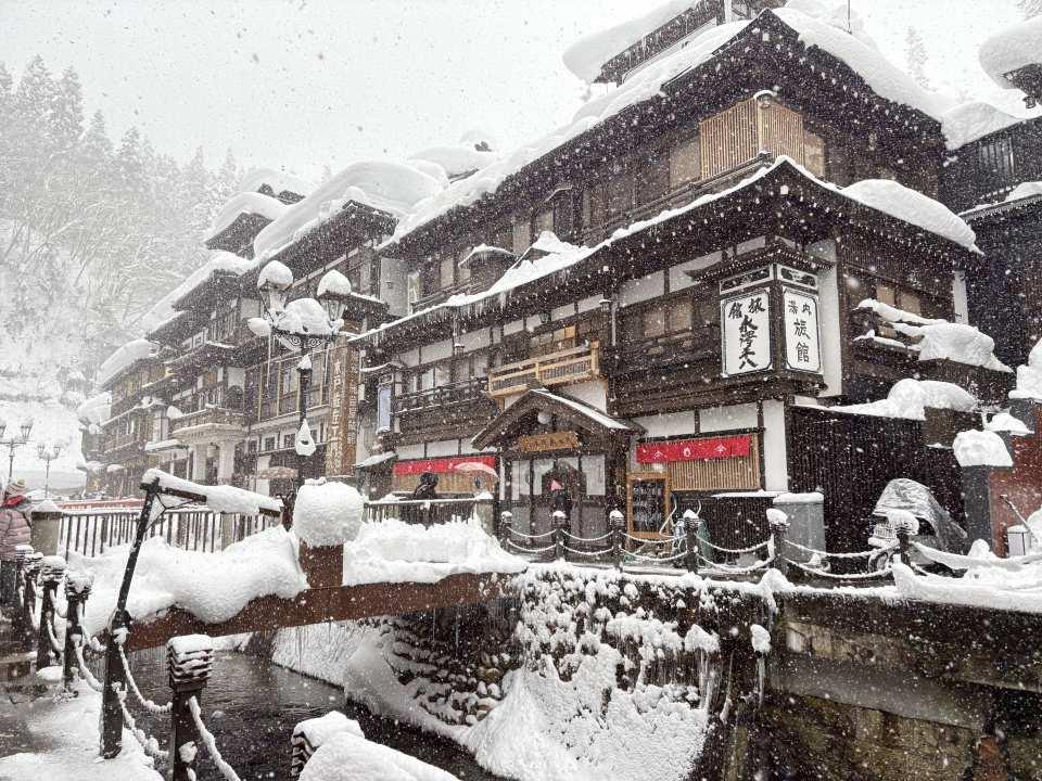 位於山形縣的「銀山溫泉」,因500多年前在此發現銀礦而得名。這裡保存著濃厚的懷舊氛圍,木造溫泉旅館沿著溪流排列,入夜後煤氣燈點亮街道,洋溢著古樸浪漫的情調。銀山溫泉不僅是經典日劇《阿信》的拍攝舞台,更傳說為動畫《神隱少女》湯屋的靈感來源。每到冬季,雪景與復古建築相互映襯,宛如走進夢幻世界,吸引無數旅人慕名而來。