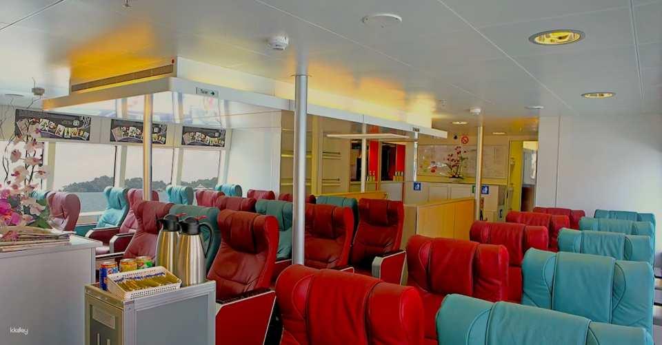 乘坐民丹島度假村渡輪(Bintan Resorts Ferries)從新加坡到達民丹島,享受順暢渡輪服務的便利和舒適。提前預訂門票,節省時間和金錢。多種票型任君選擇,敬請升級至翡翠艙,享受高級座位和專屬設施。
