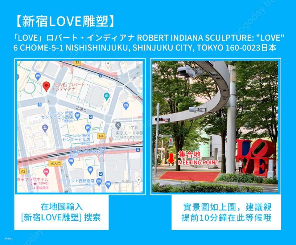 - 08:00A方案:新宿站 LOVE 雕塑 集合出發 (請提早15分鐘到集合地點)