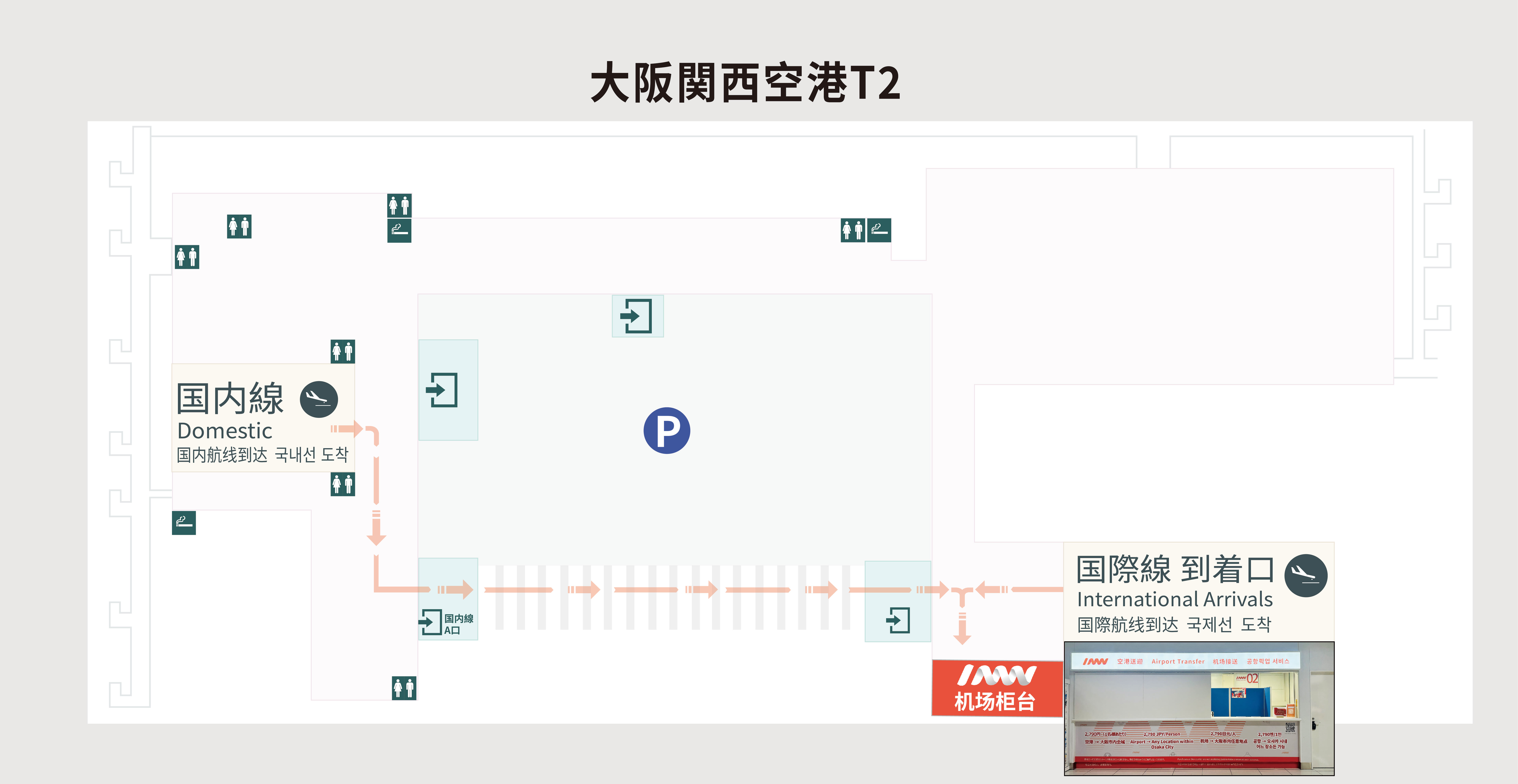 ☼關西機場/指定出發地 → 出示QR-Code由工作人員核銷 → 領取行李牌 → 依工作人員安排乘車 → 抵達轉乘站確認後搭乘安排轉乘車輛 → 前往指定目的地/關西機場