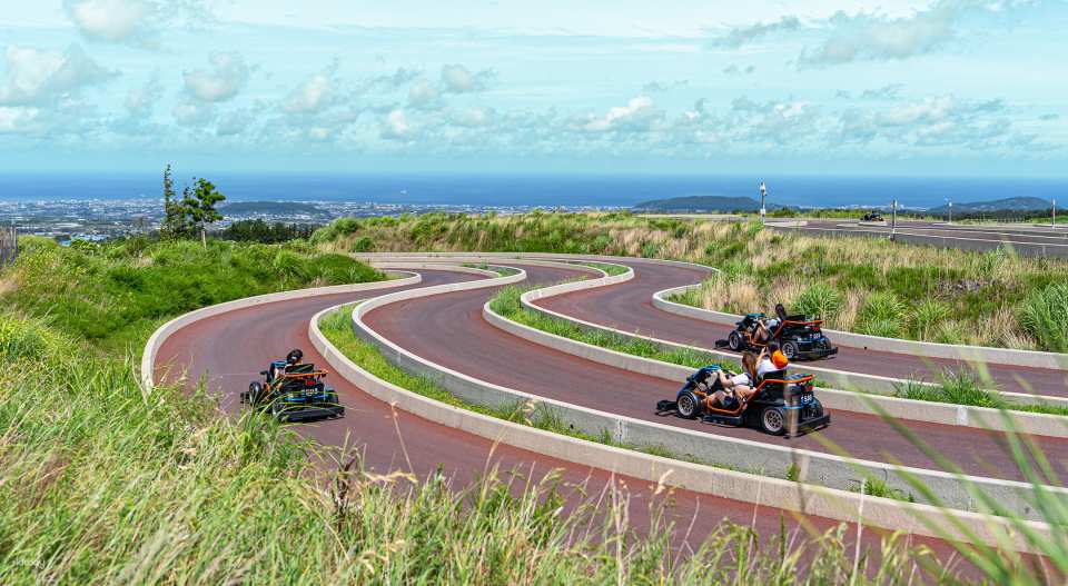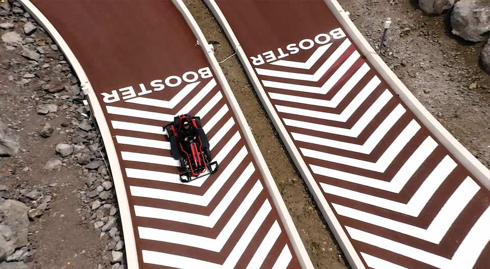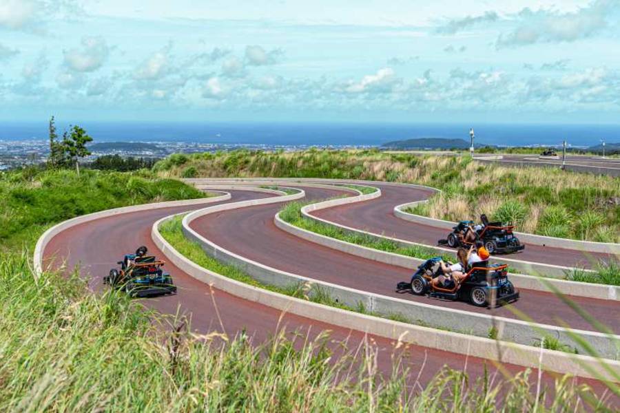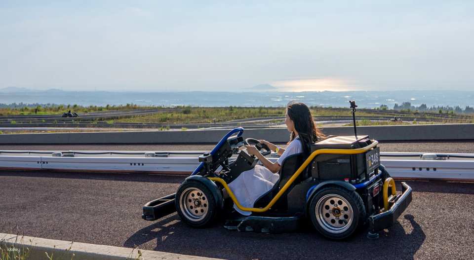 以重力速度(9.81公尺/秒²)衝下山坡,欣賞濟州島的海景!終點處,自動恢復系統將您送上山坡,同時欣賞漢拿山和大自然的景色!賽道採用專為GRAVITY RACING和GR(Gravity Racer)車輛優化的坡度和彎道,並採用自主研發的技術。