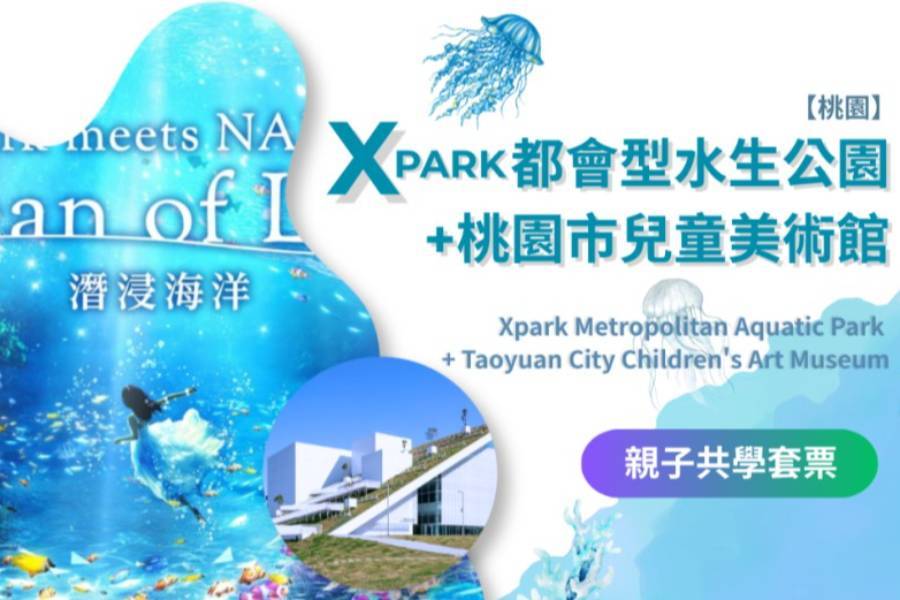 一票雙享全台首座日系水族館Xpark與桃園市兒童美術館!Xpark攜手NAKED推出「Ocean of Light」沉浸式光影展演,帶來極致的海洋視覺震撼;接著探訪純白三角造型的「山丘美術館」,館內引入大面積自然採光,完美結合藝術啟蒙與空間遊憩。一次打包科技與美學,絕對是親子共學放電的最佳首選!