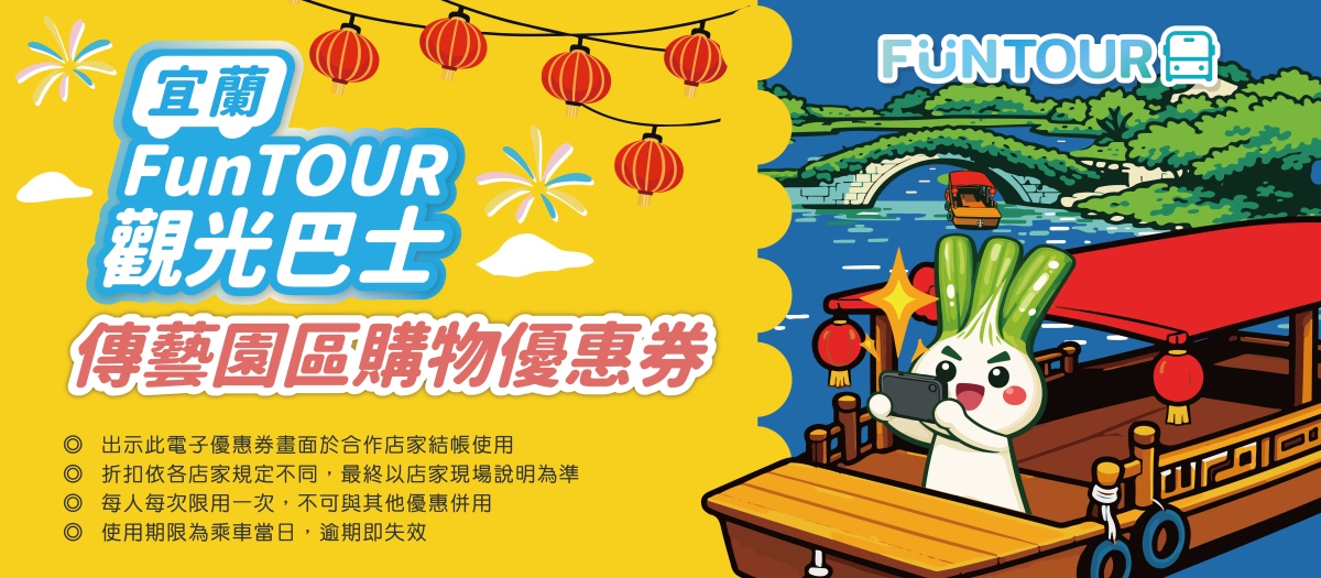 ⭐ 必用「FunTOUR觀光巴士專屬優惠券」享園區合作店家商品或體驗之優惠折扣