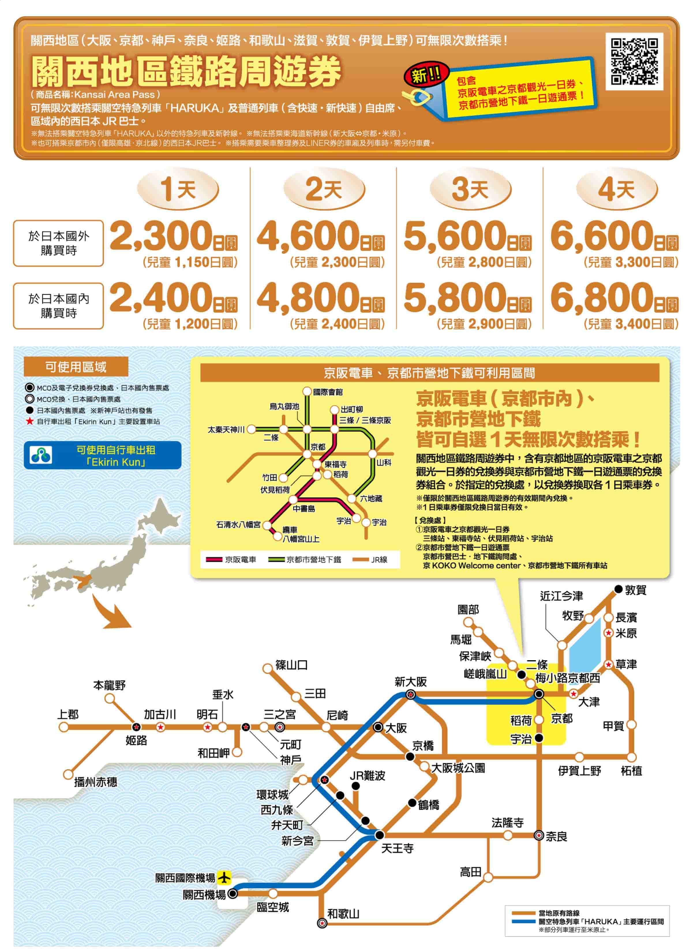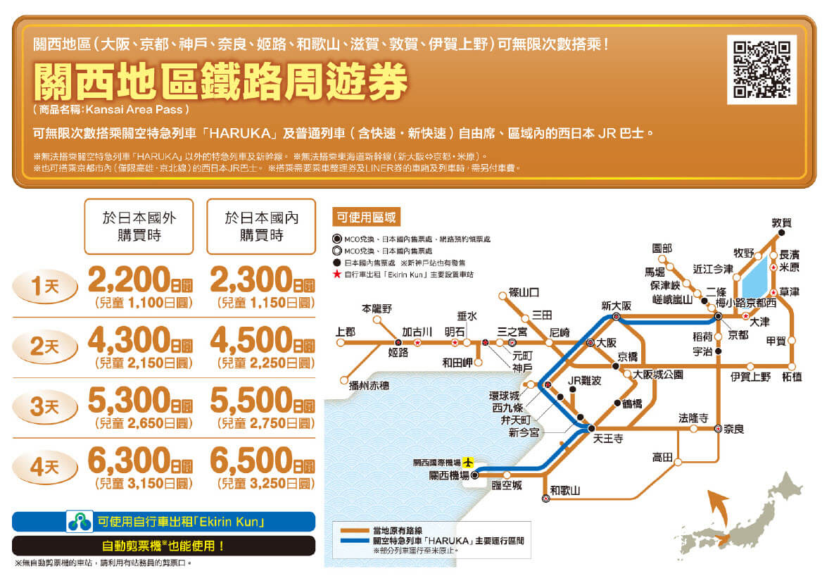 【日本】JR關西地區鐵路周遊券| 1日、2日、3日、4日